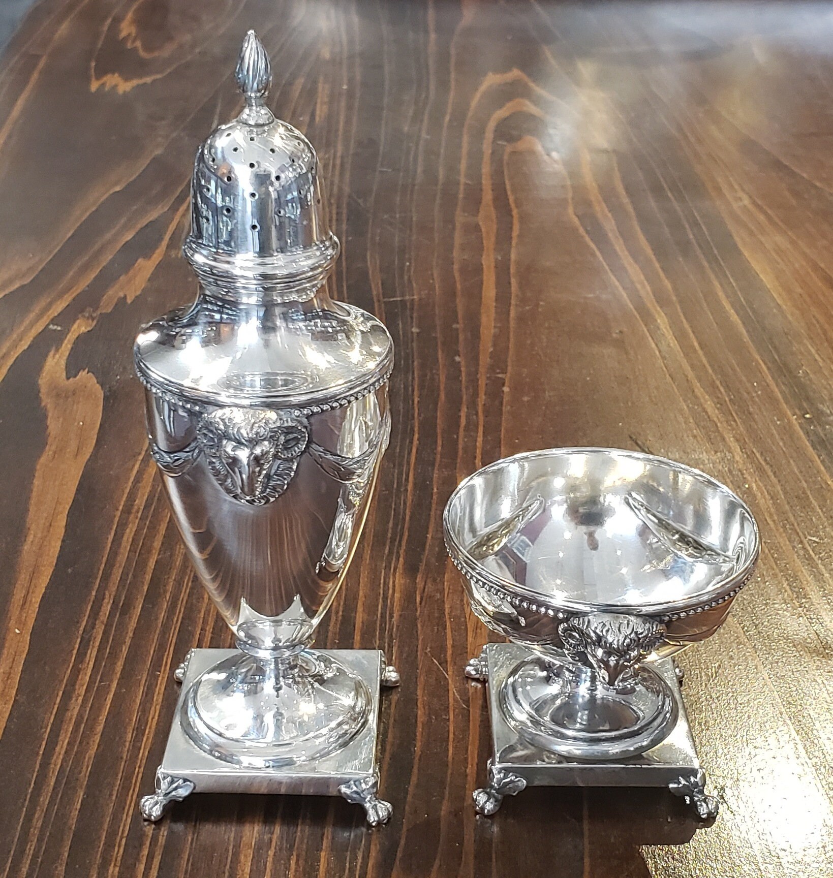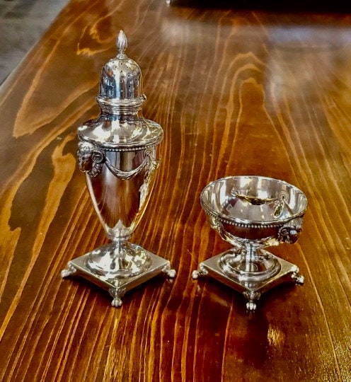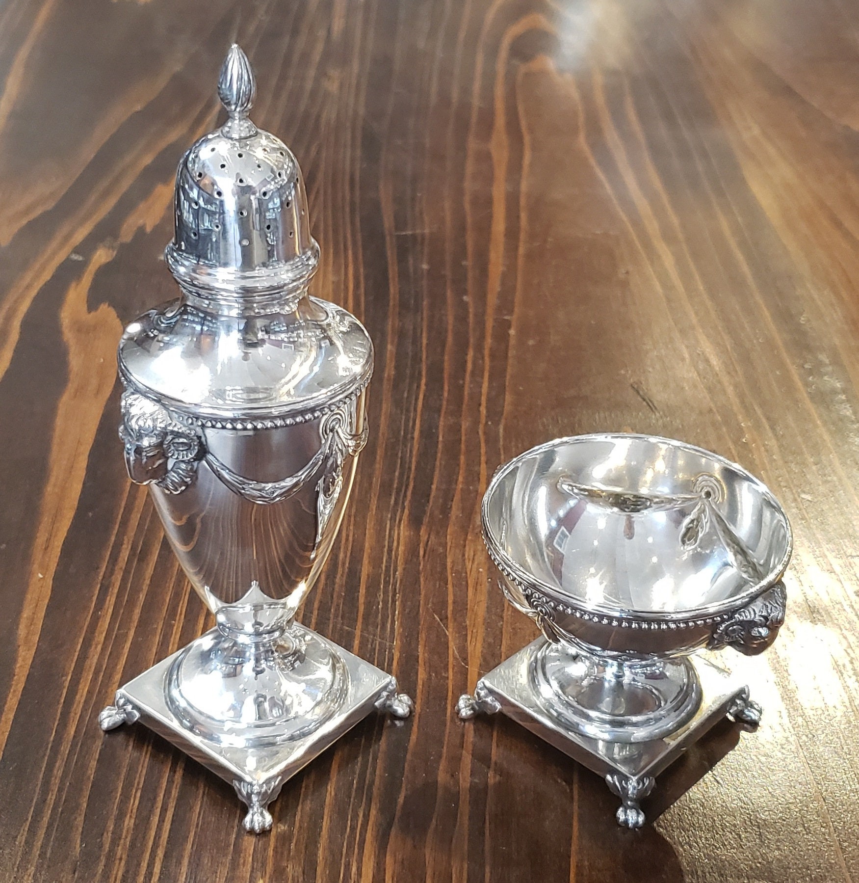 Adorn your table with this gorgeous sterling silver Salt Cellar and Pepper Shaker set made by Shreve & Co. of San Francisco ca. 1910. Despite the age, this set is in beautiful condition, and has no monograms, dents or scratches. This is a stunning and rare set!