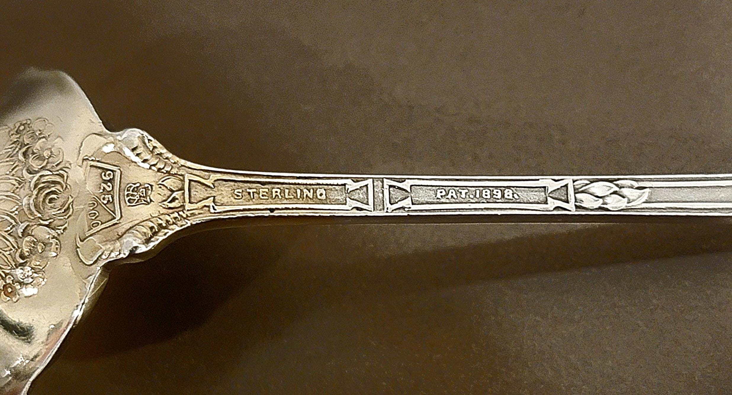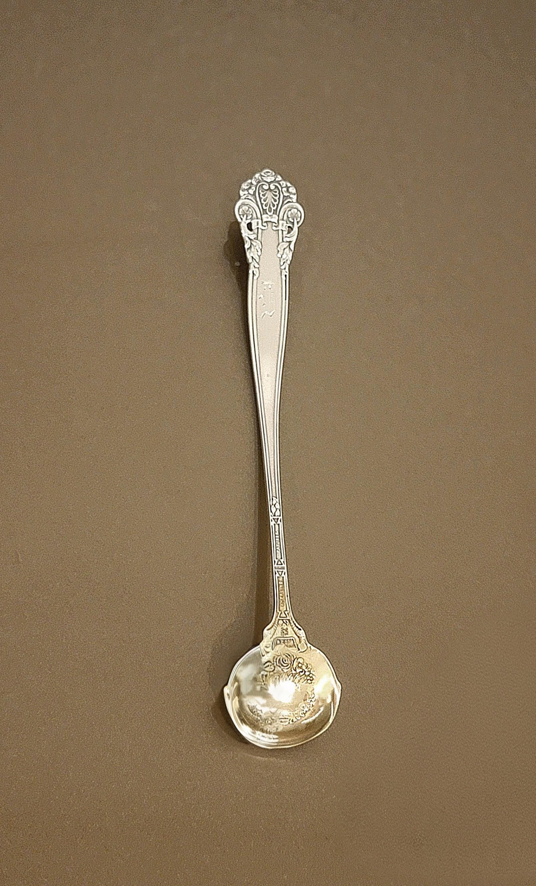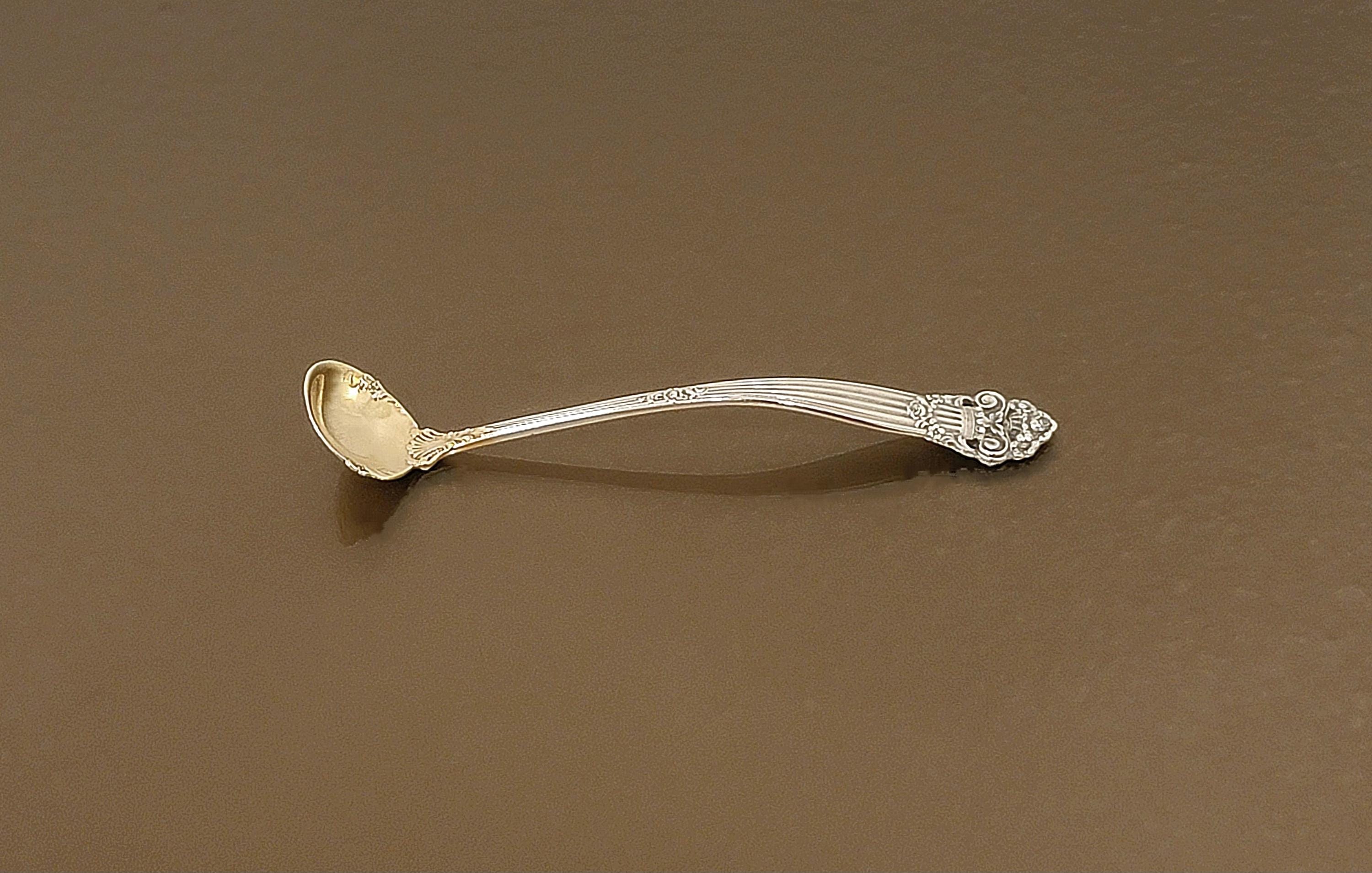 A beautiful sterling silver mustard ladle with a 22k gold washed bowl in the Georgian pattern by Towle Silversmiths. 5 1/8 inches, 0.59 troy ounce