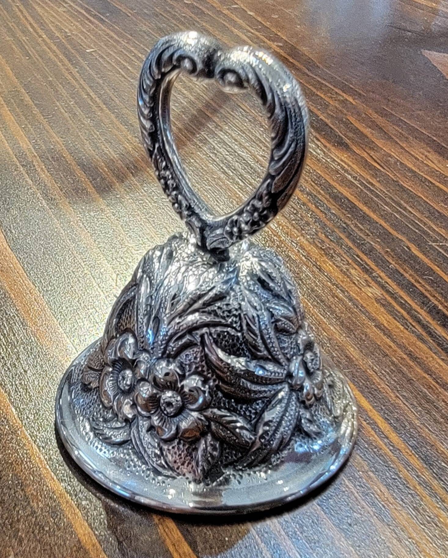 A sterling silver bell in the "Repousse" pattern by S. Kirk & Son of Baltimore, MD.