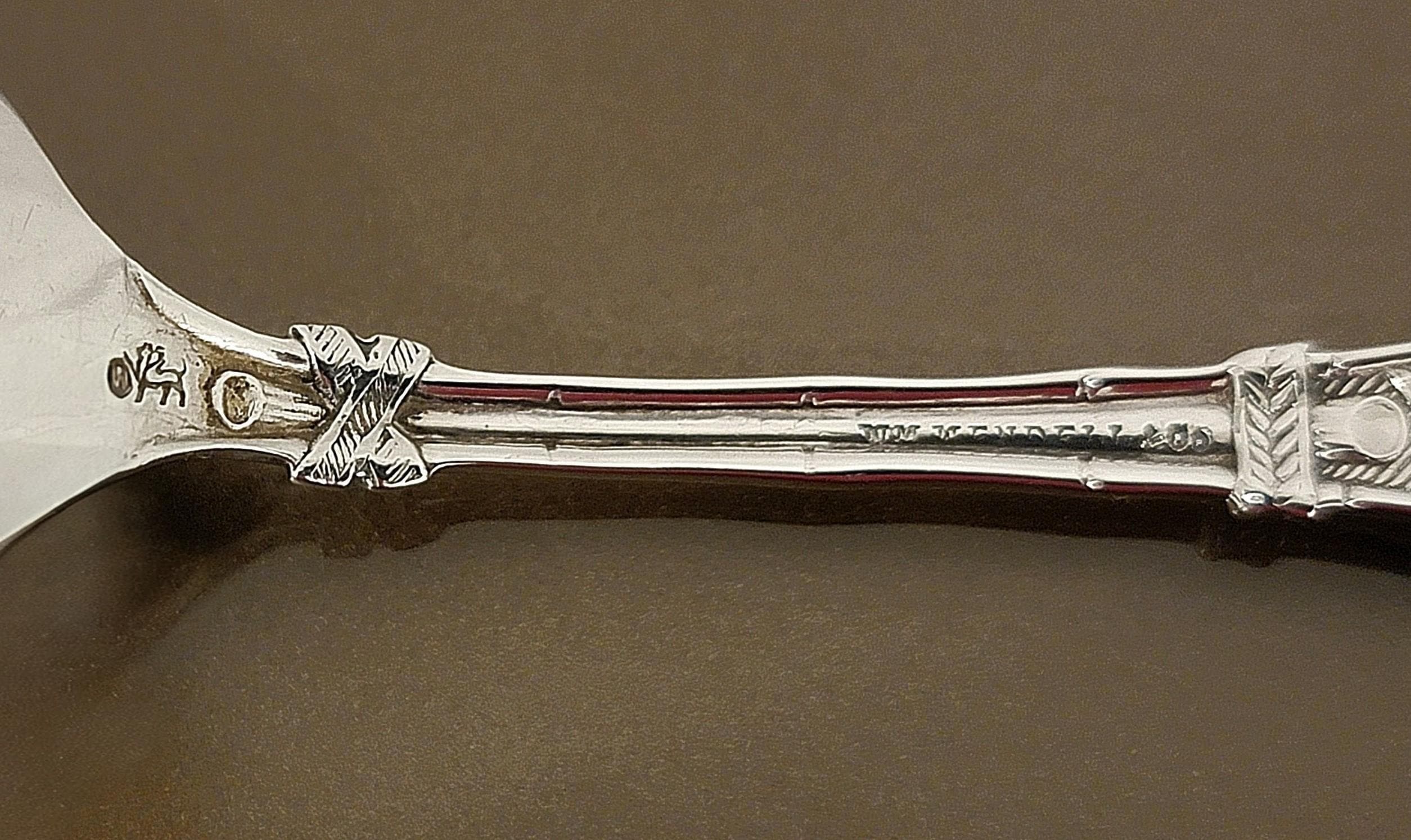 Originally Tift & Whiting, Whiting Manufacturing Co. was founded by Albert T. Tift and William D. Whiting in 1840 in North Attleboro, Massachusetts where they specialized in creating fine jewelry. By 1910, the company had settled in Bridgeport, Connecticut and expanded its collection to include silverware. In 1926, Gorham Corporation purchased Whiting Manufacturing.