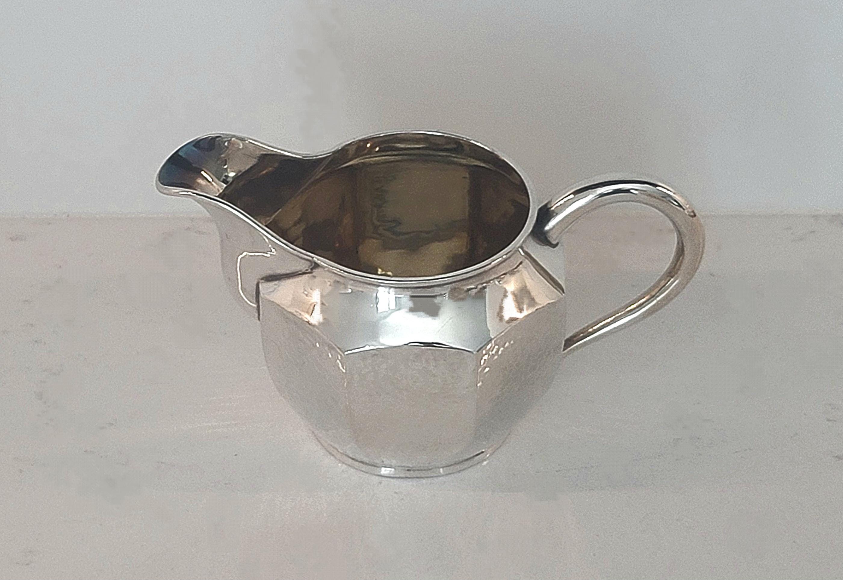 Each piece features a hand-hammered octagonal body, sleek curves, and elegant symmetry, embodying the minimalist sophistication of mid-century modern design. The interiors are richly gilded, a detail both decorative and practical—preserving flavor and resisting tarnish.