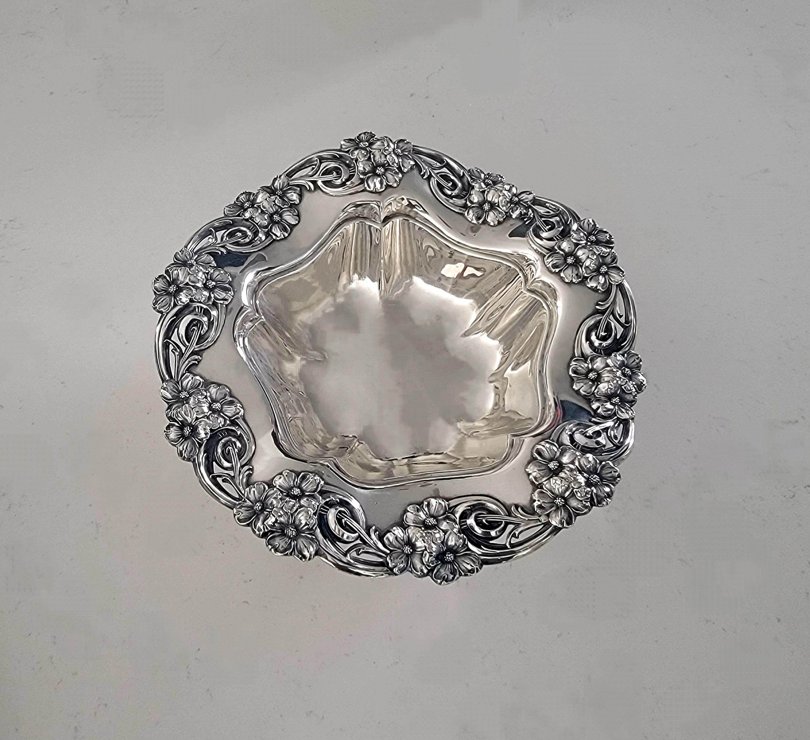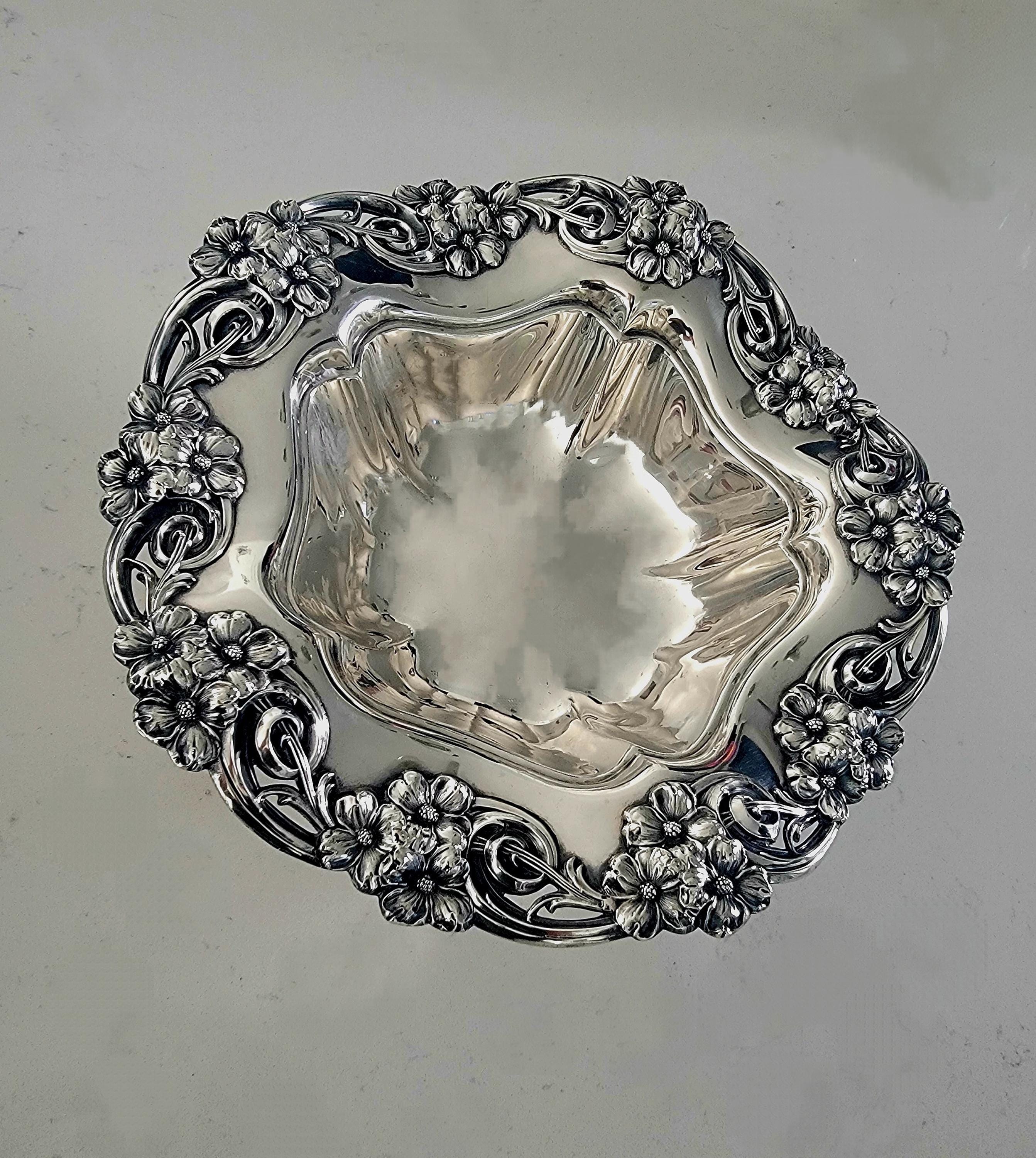 A rare and substantial Art Nouveau sterling silver bowl by Woodside Sterling Co. — a true collector’s piece that blends history, craftsmanship, and beauty.