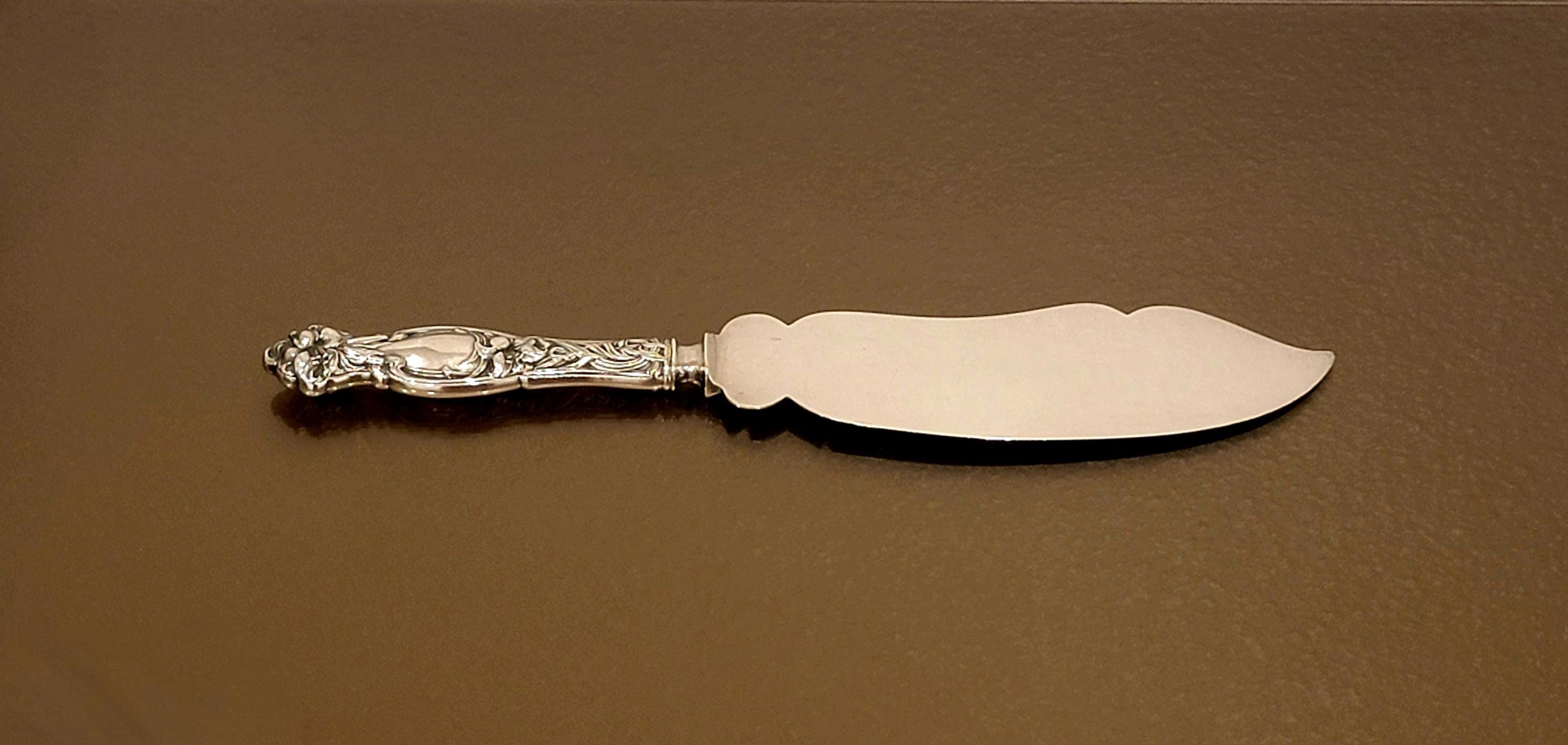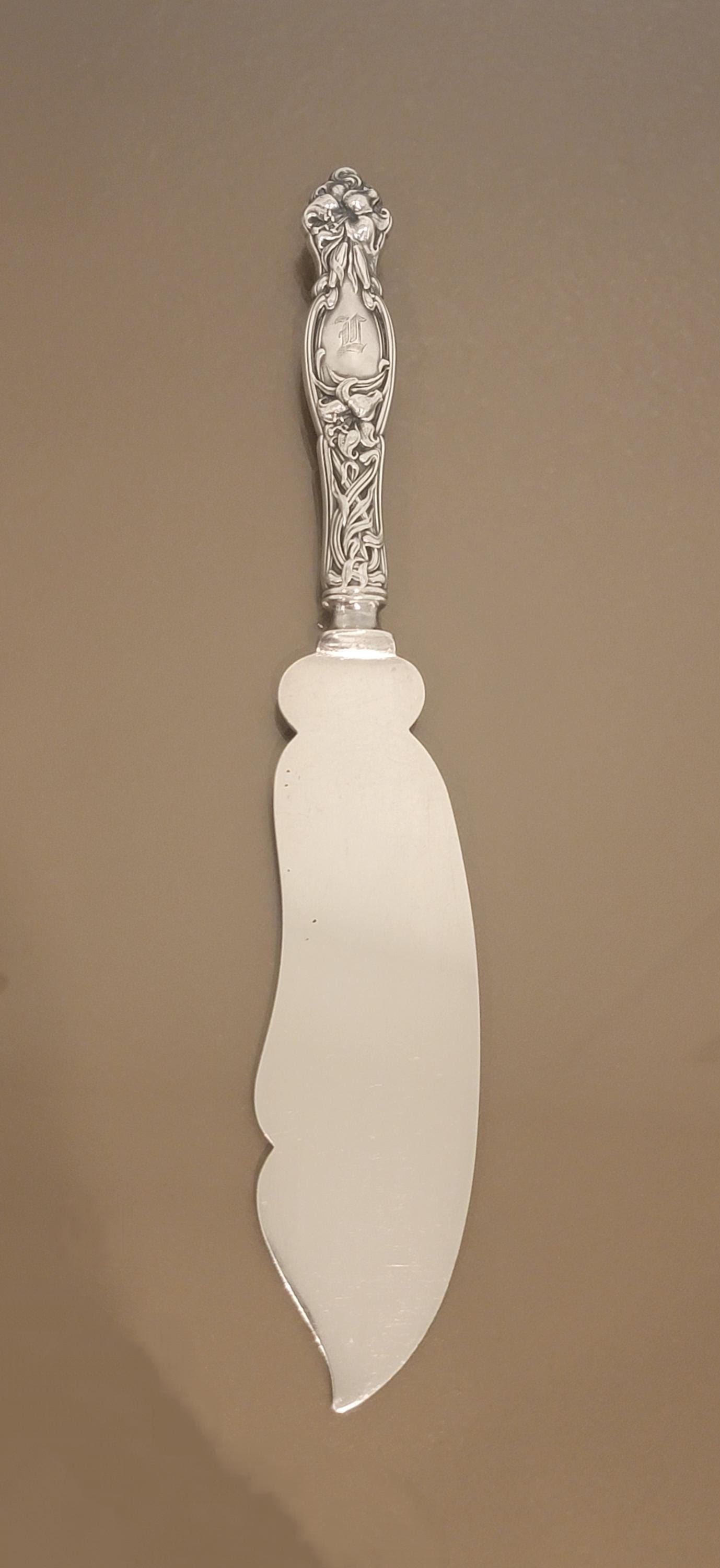 Step into the elegance of the early 20th century with this rare sterling silver ice cream slice, crafted in the celebrated Frontenac pattern. Introduced in 1903 at the height of the Art Nouveau movement, Frontenac is renowned for its flowing lines and bold tiger lily blossoms, symbols of passion and refinement.