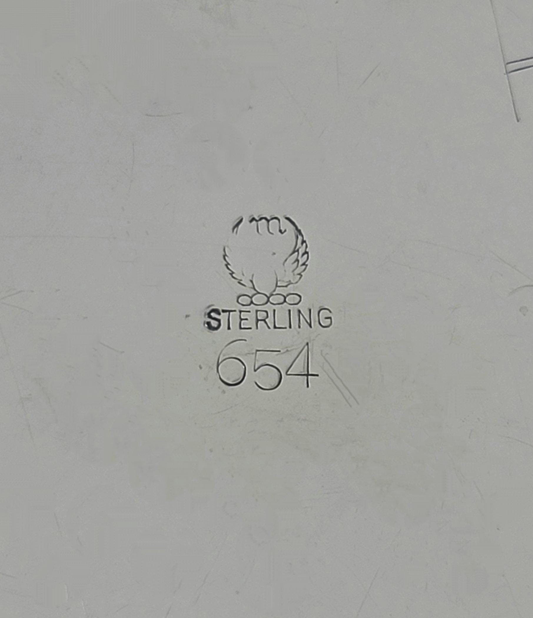 • Marks: Winged hallmark, “STERLING,” and “654”