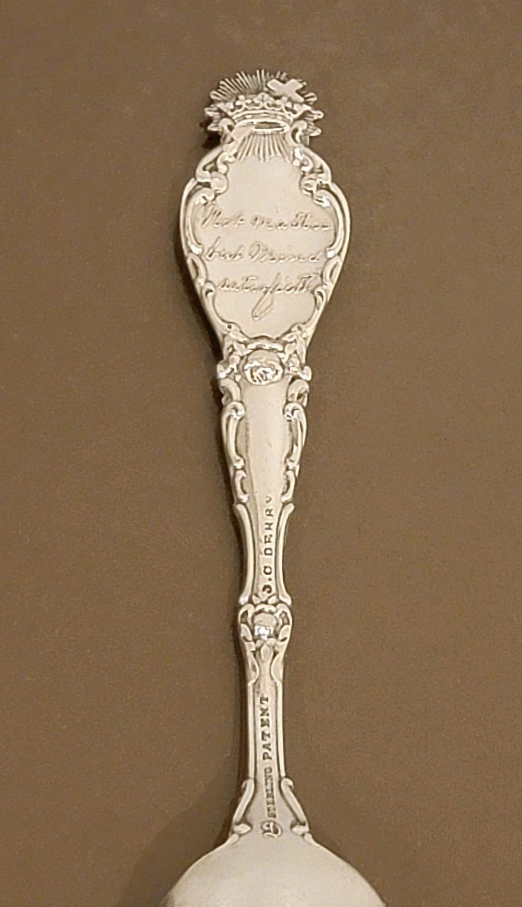 Durgin’s presidential and historic-landmark spoons are among the finest produced in the late 19th century. This Mount Vernon design captures both American heritage and Gilded-Age artistry, making it an exceptional display or heirloom piece.