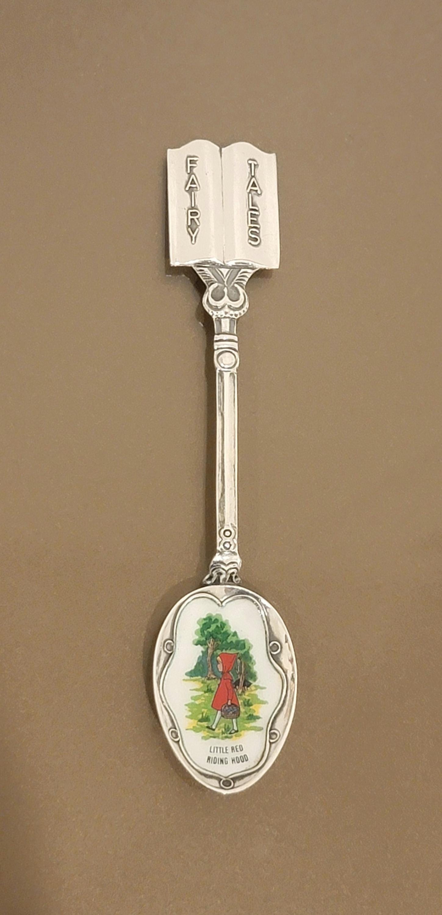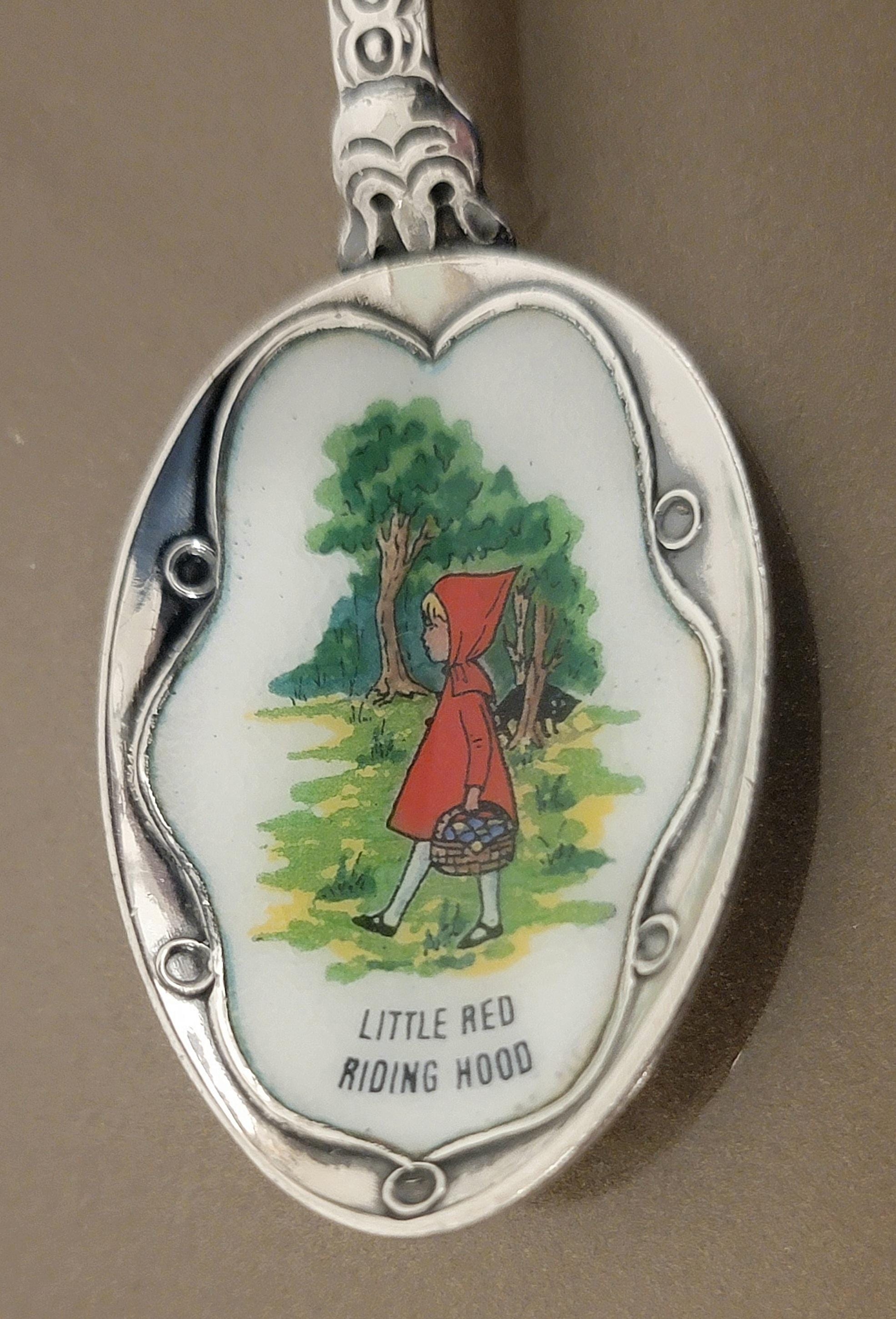 Step into a storybook with this delightful vintage sterling silver souvenir spoon featuring Little Red Riding Hood from the beloved Fairy Tales series. A charming collectible that blends craftsmanship and nostalgia.