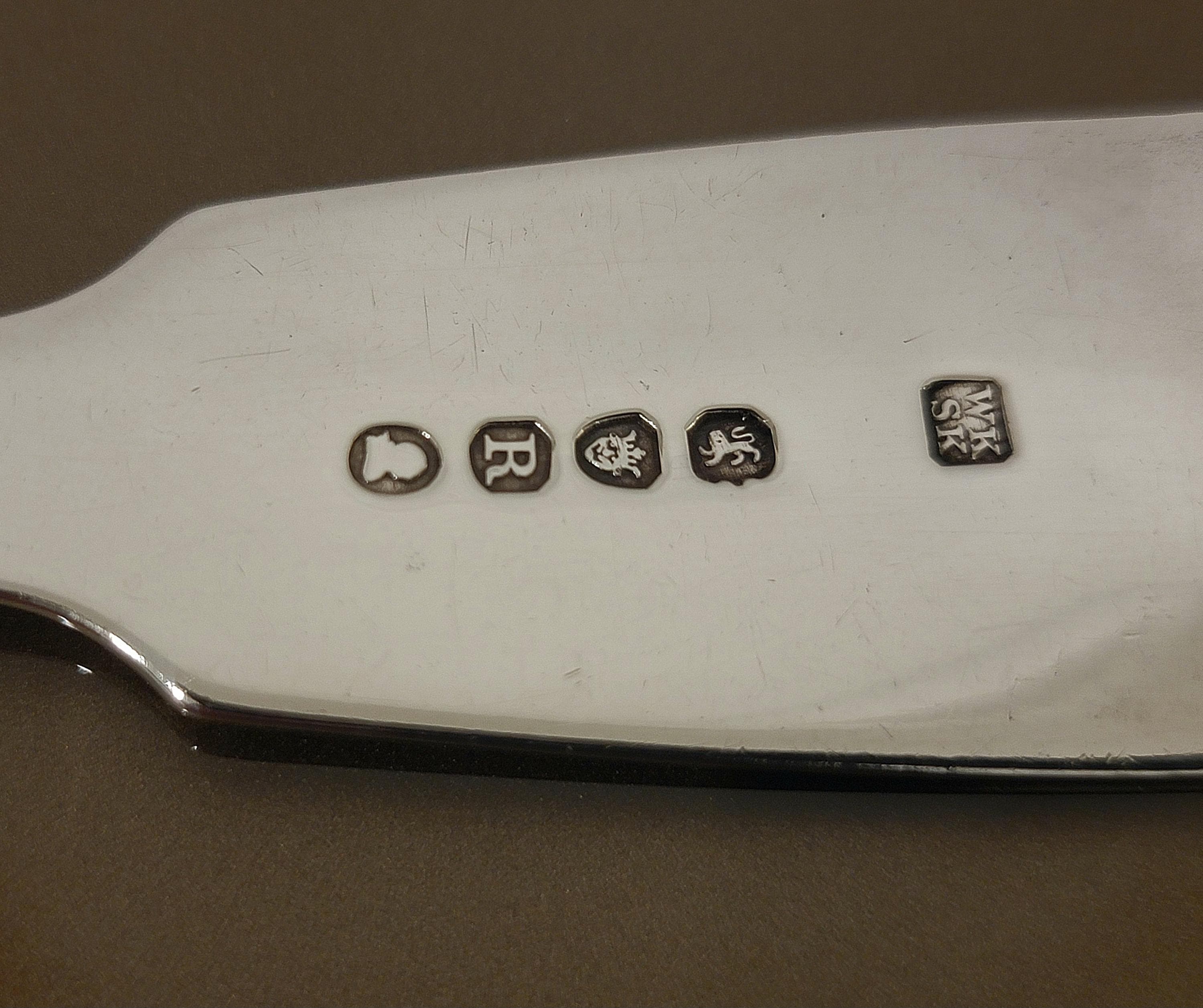 Fully British hallmarked, this knife is confirmed solid sterling silver (.925) throughout. With a substantial weight of 4.22 troy ounces, it has the heft and quality expected of fine antique English silver.