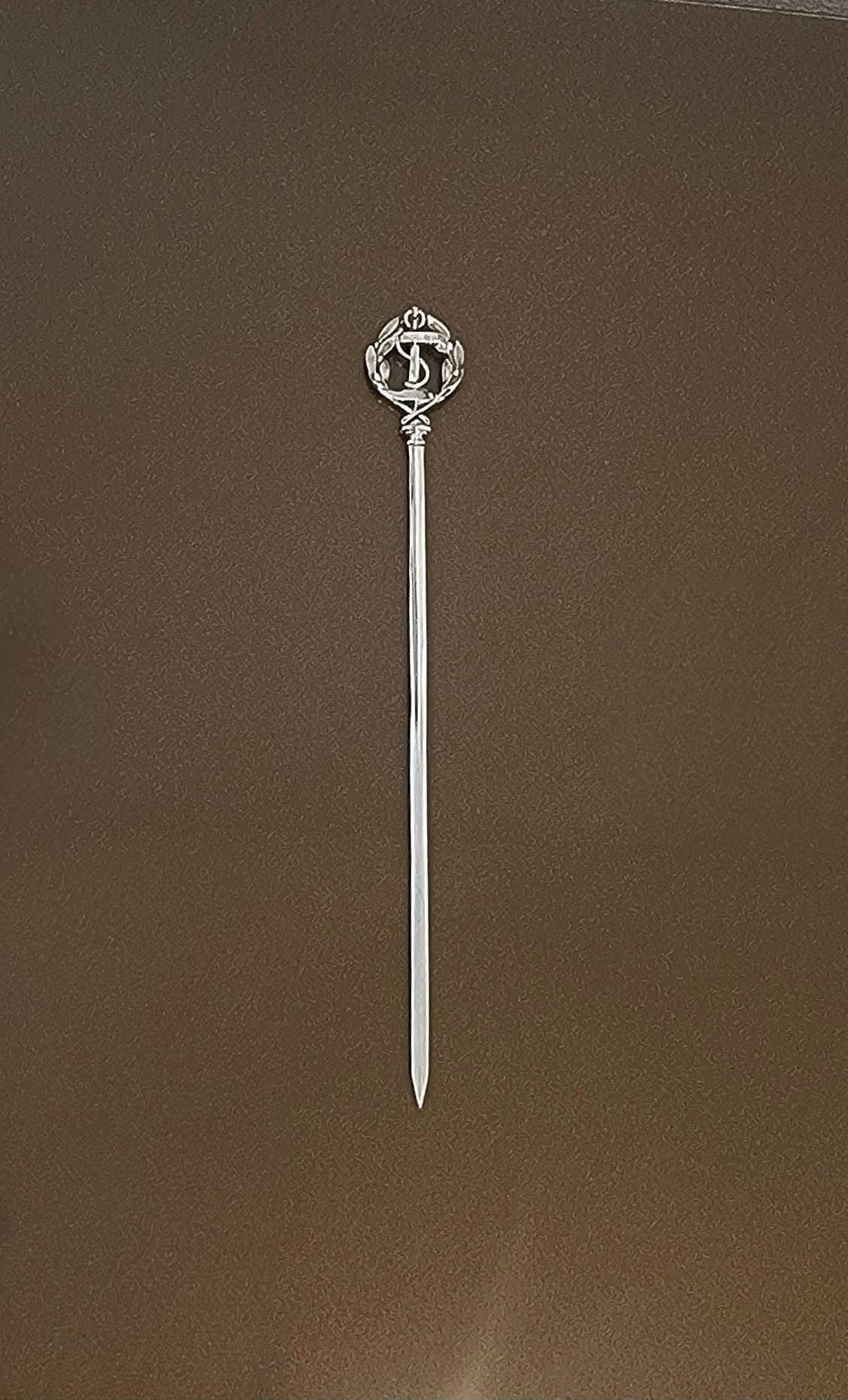 The sculptural finial and balanced proportions give this skewer a strong decorative presence, making it equally well suited for table service, barware styling, or display in a French silver collection.