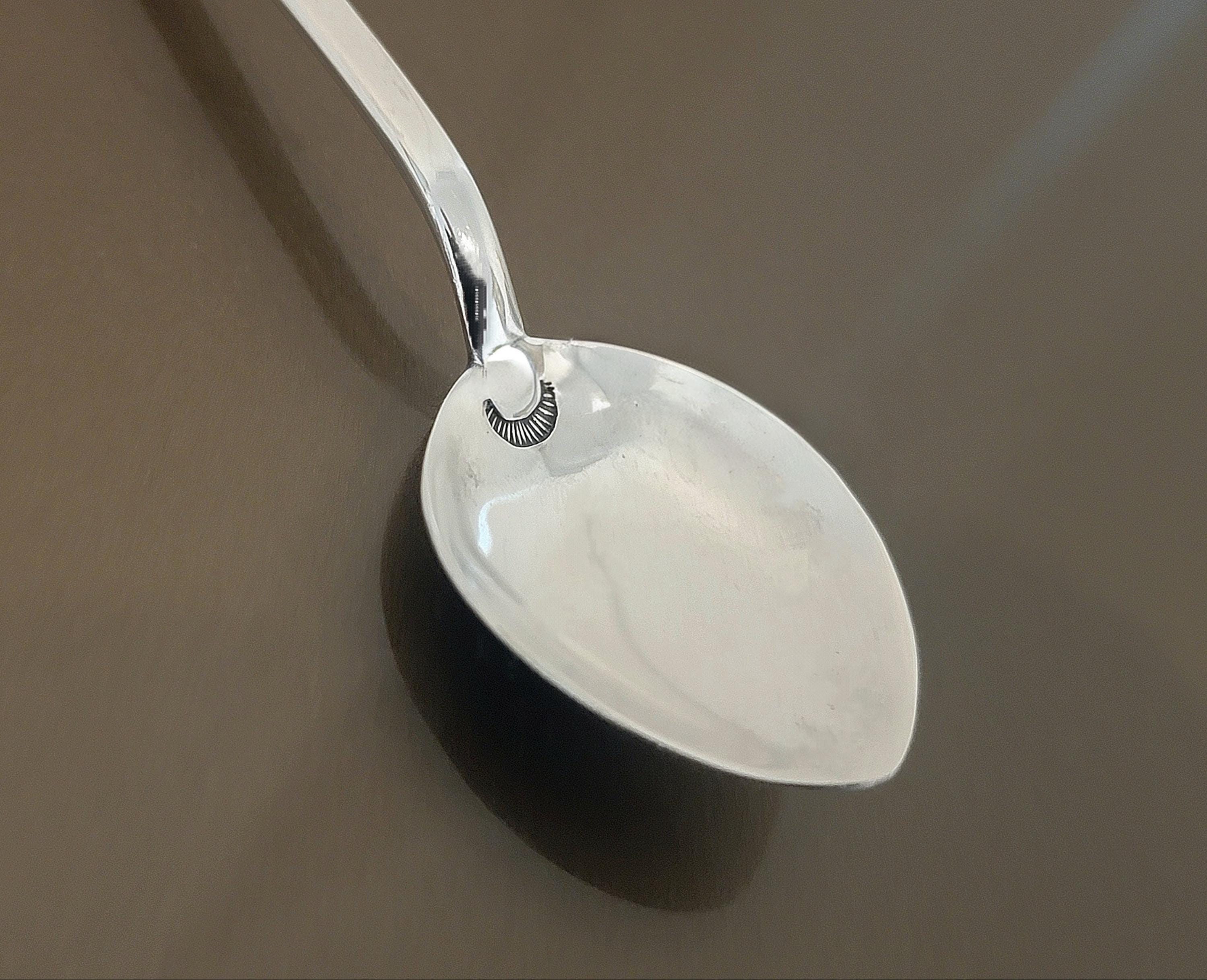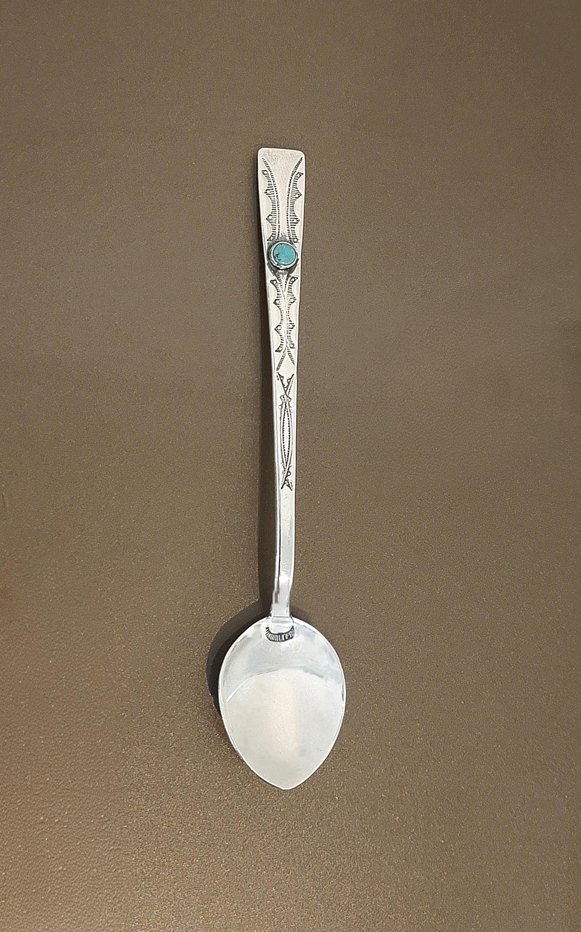This is a refined, smaller spoon — ideal for espresso service, specialty teas, or as part of a curated silver or Native American–inspired collection.