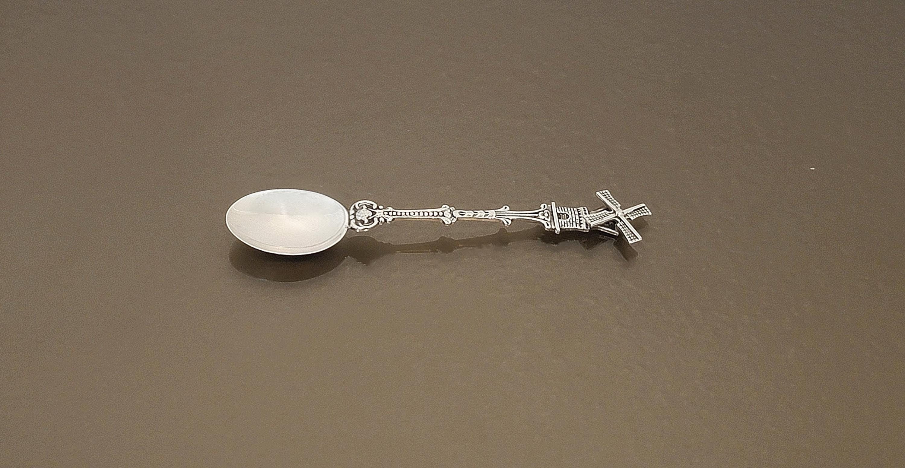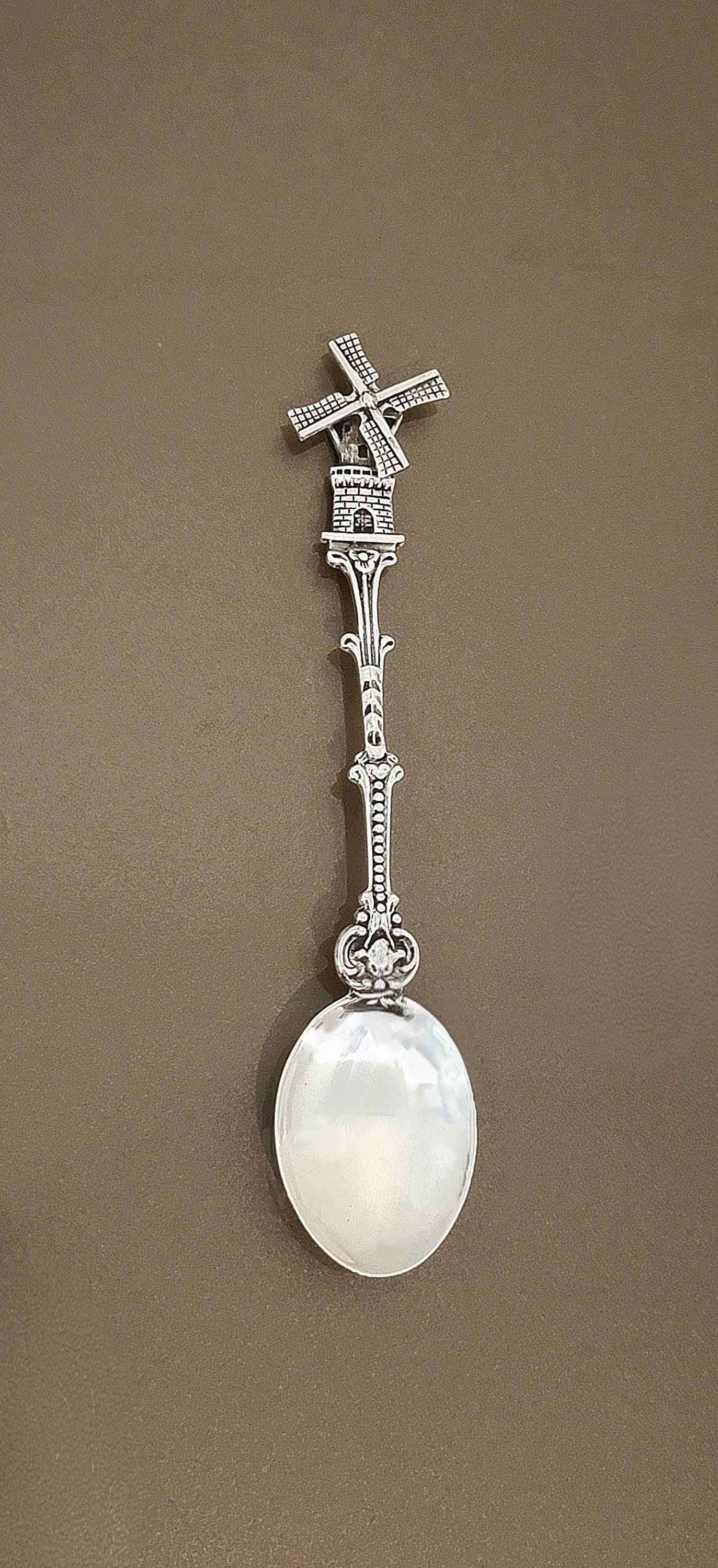Dutch windmill spoons are highly collectible and were popular late 19th to early 20th century tourist pieces. The windmill represents Holland’s identity, water management history, and rural heritage.