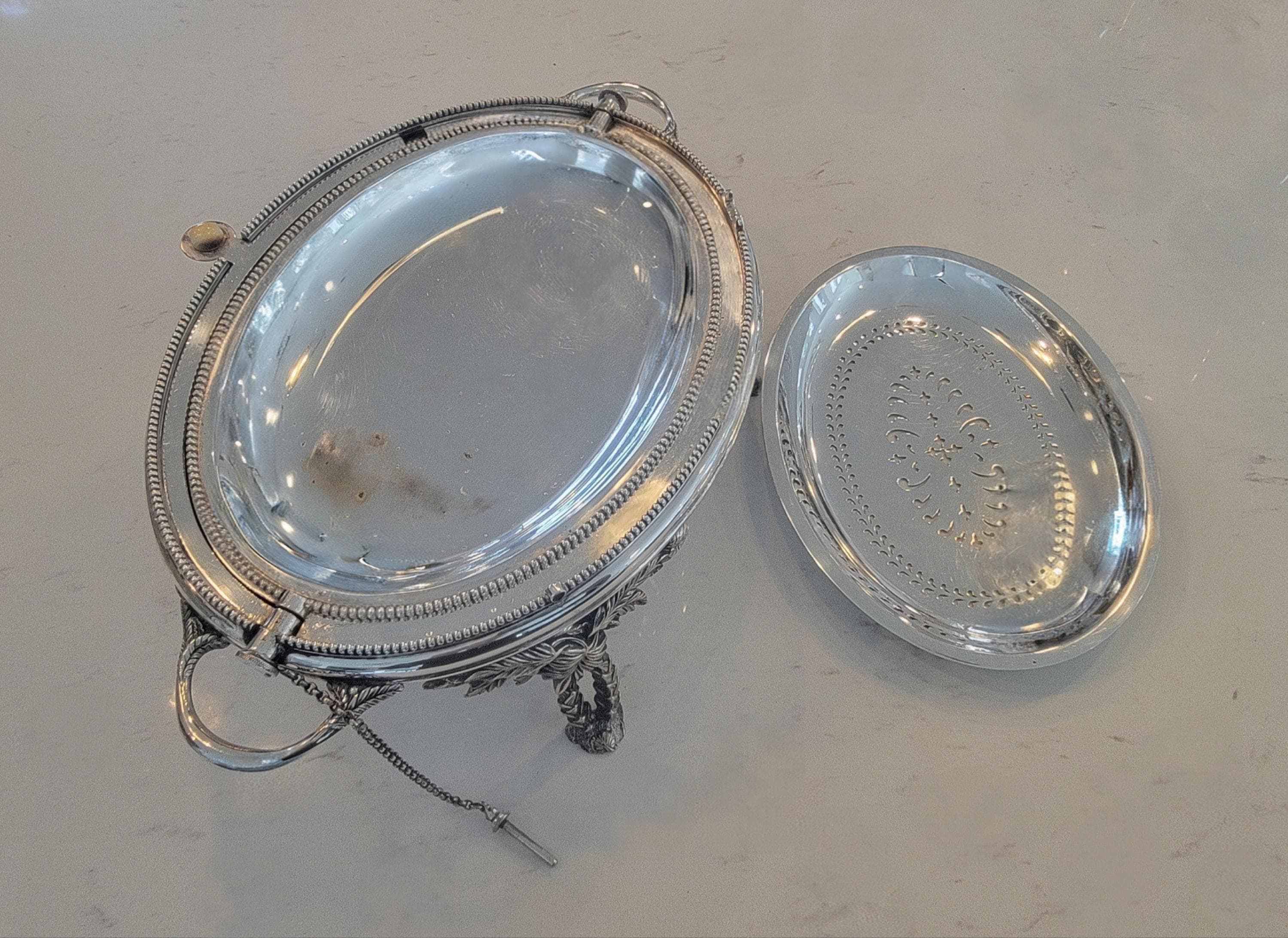 An extraordinary late 19th century English silver plate entrée server by Atkin Brothers of Sheffield, pattern number 4111.