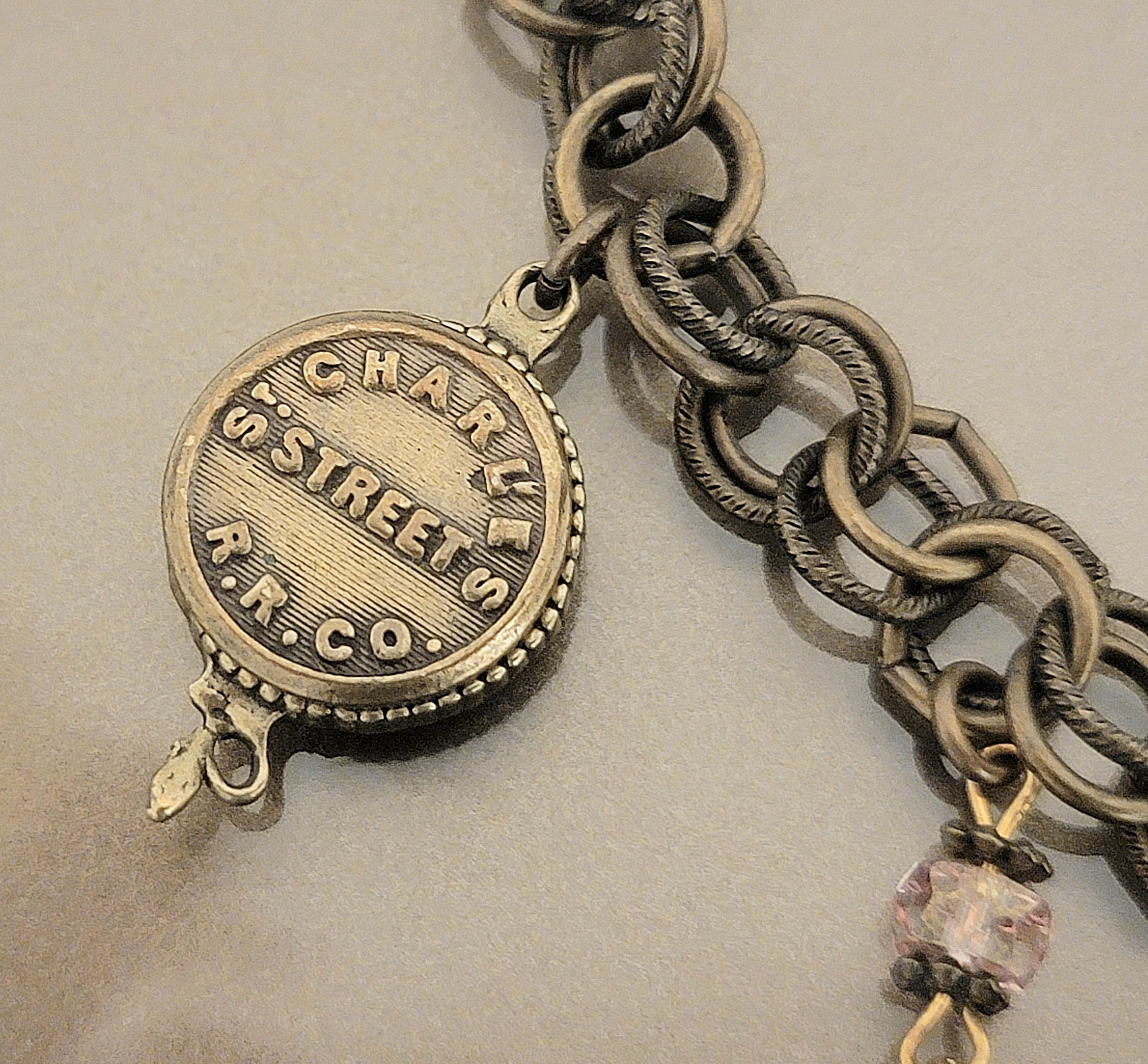A small charm stamped “St. Charles Street R.R. Co.” references the iconic St. Charles Avenue streetcar line, the oldest continuously operating street railway in the world and one of New Orleans’ most beloved landmarks.