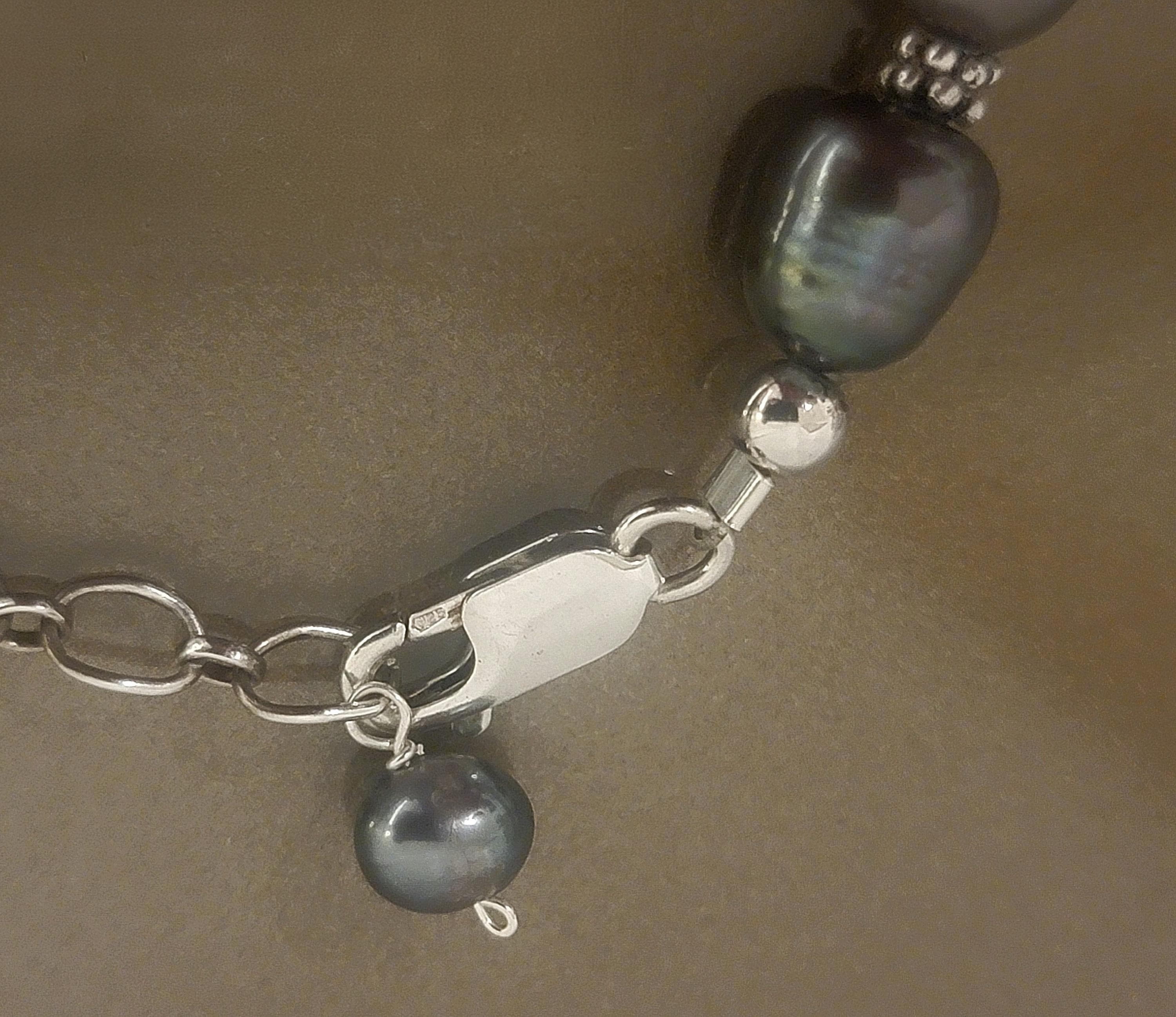 Hardware: Genuine 925 Sterling Silver lobster claw clasp (hallmarked) and decorative silver spacer beads between every pearl.