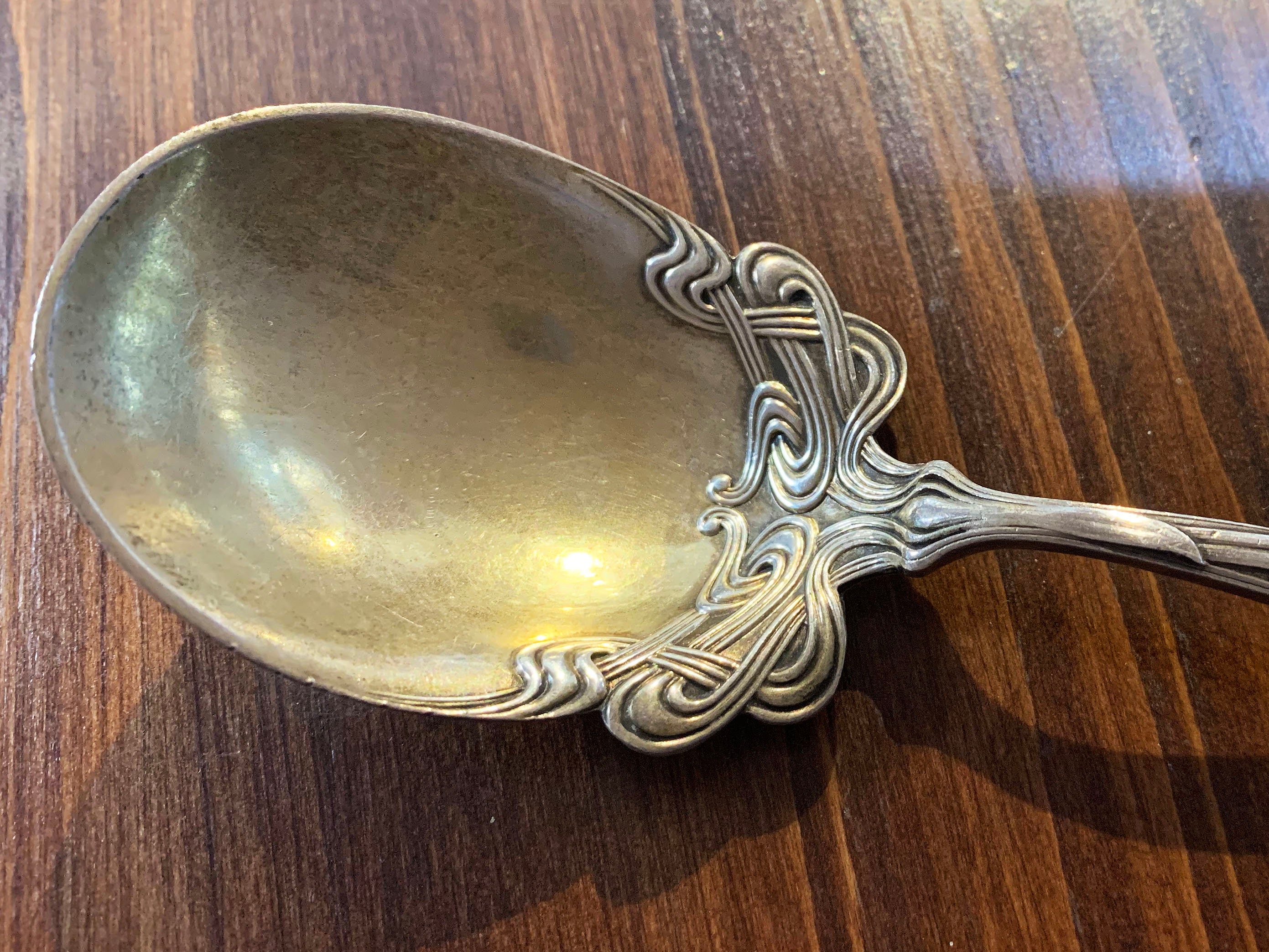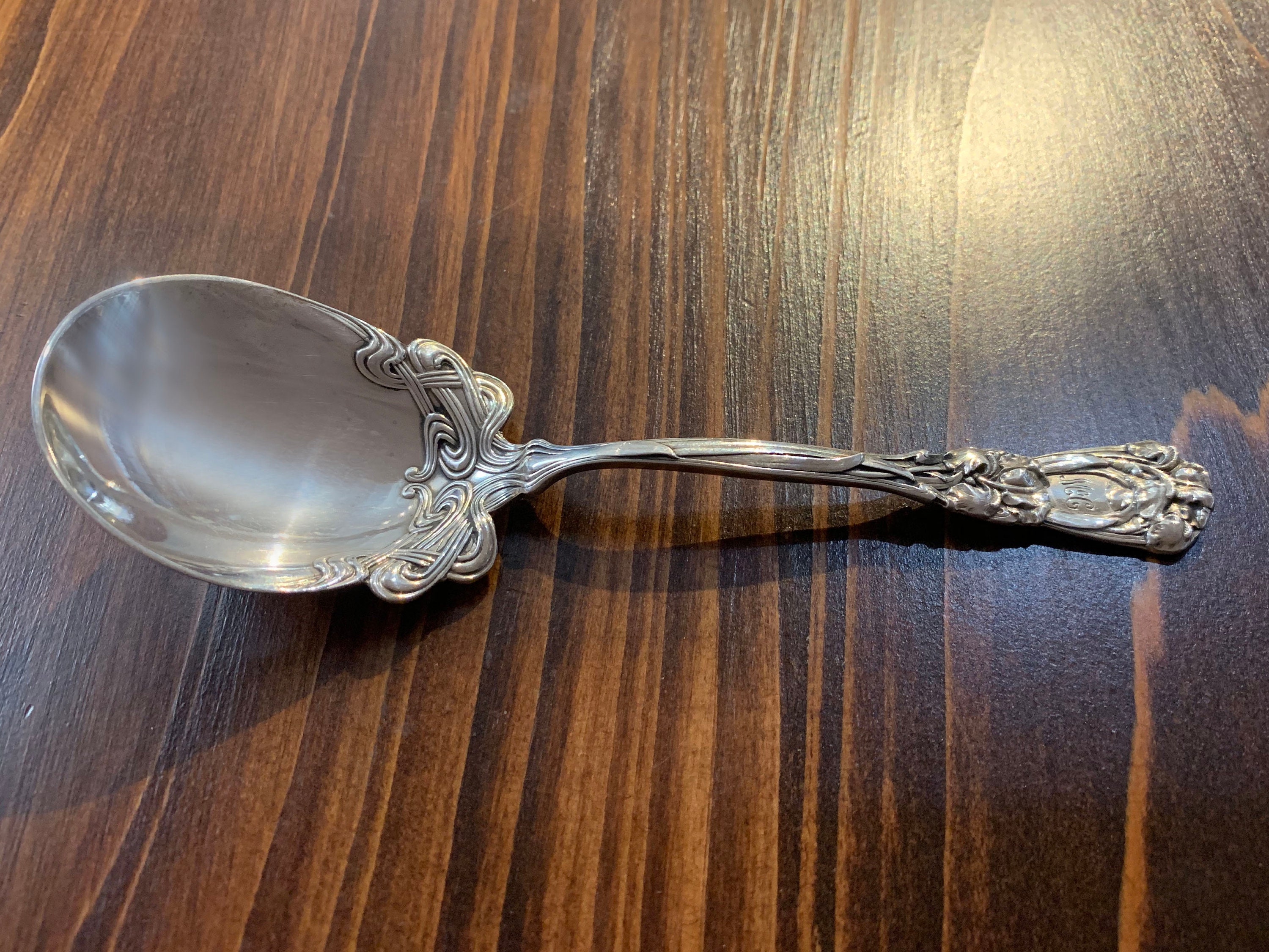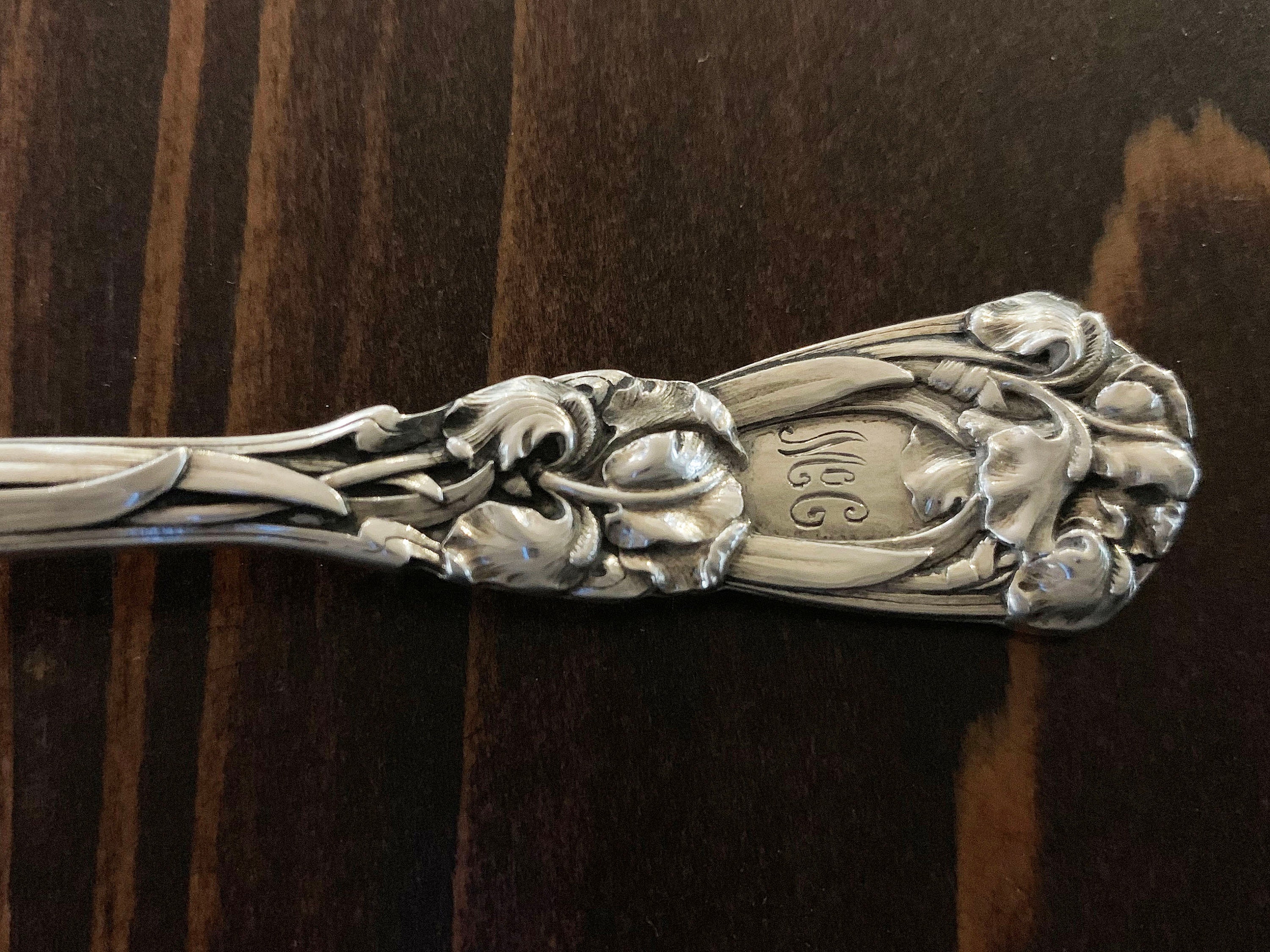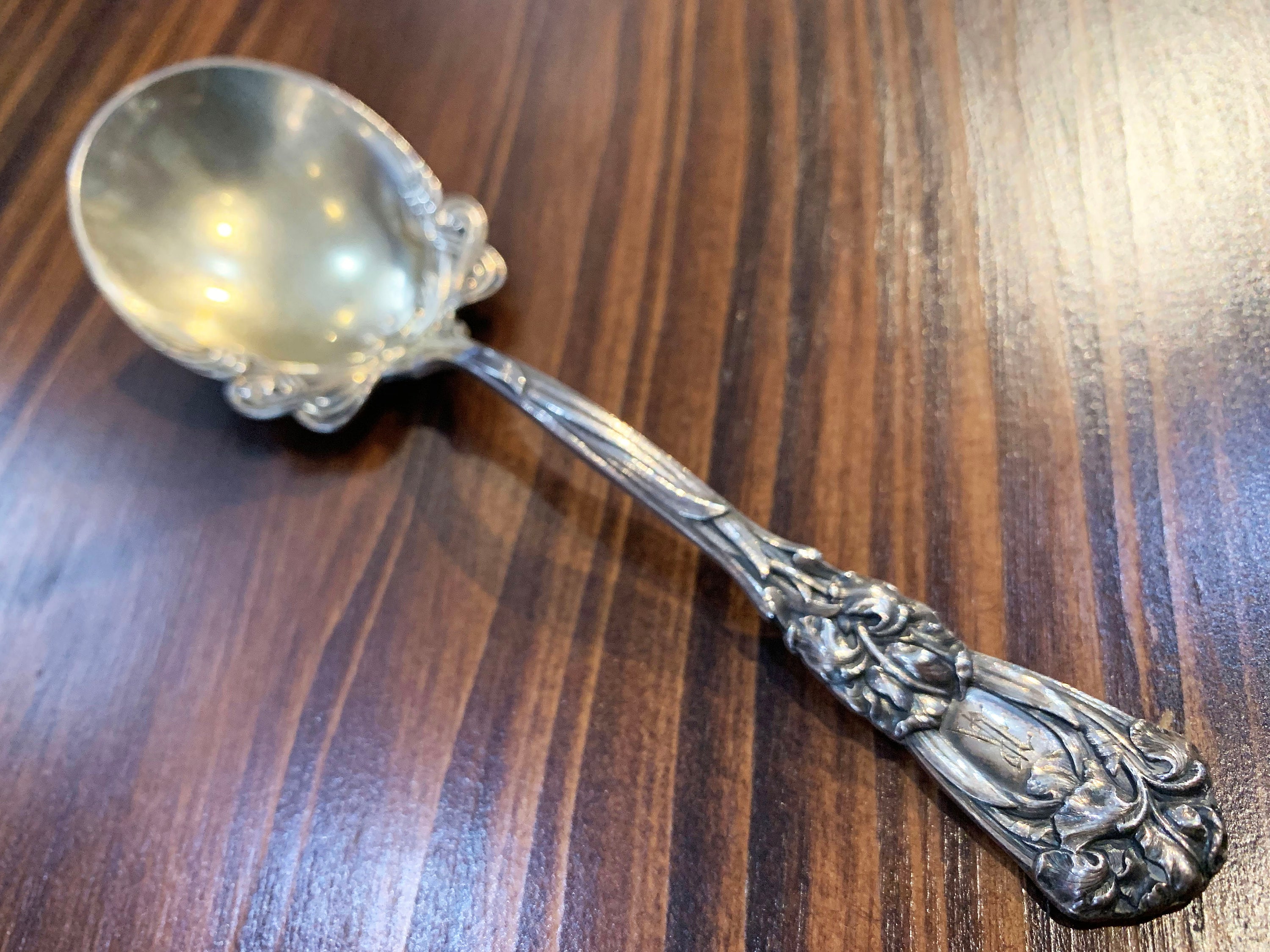 Adorn your table in timeless elegance with this sterling silver sugar spoon by William B. Durgin Co. Designed in 1900, the Iris pattern features a stunning floral handle hailing from the American Art Nouveau movement. For easy tarnish preventative storage, add www.etsy.com/listing/782095460.