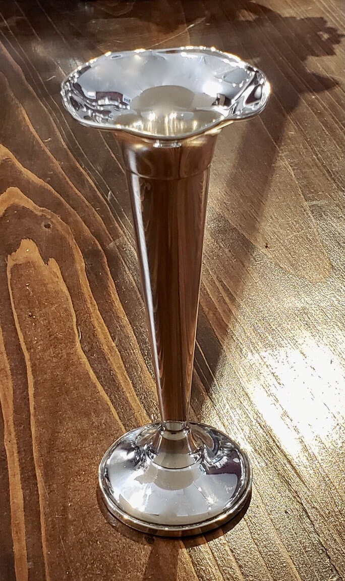 Fisher Sterling Trumpet Vase #606. We highly recommend using our four piece cleaning kit for easy maintenance, beautiful shine and infrequent tarnishing: https://etsy.me/2RqR88j.