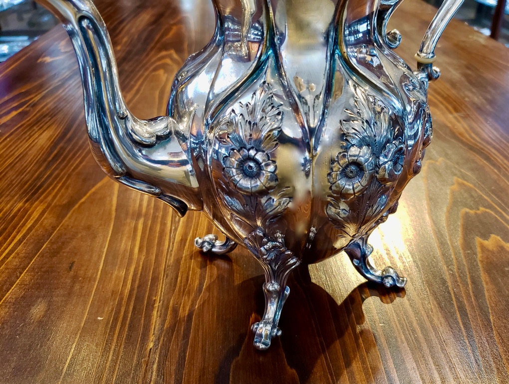 Silverplated Repousse Tea Pot. We highly recommend using our four piece cleaning kit for easy maintenance, beautiful shine and infrequent tarnishing: https://etsy.me/2RqR88j.