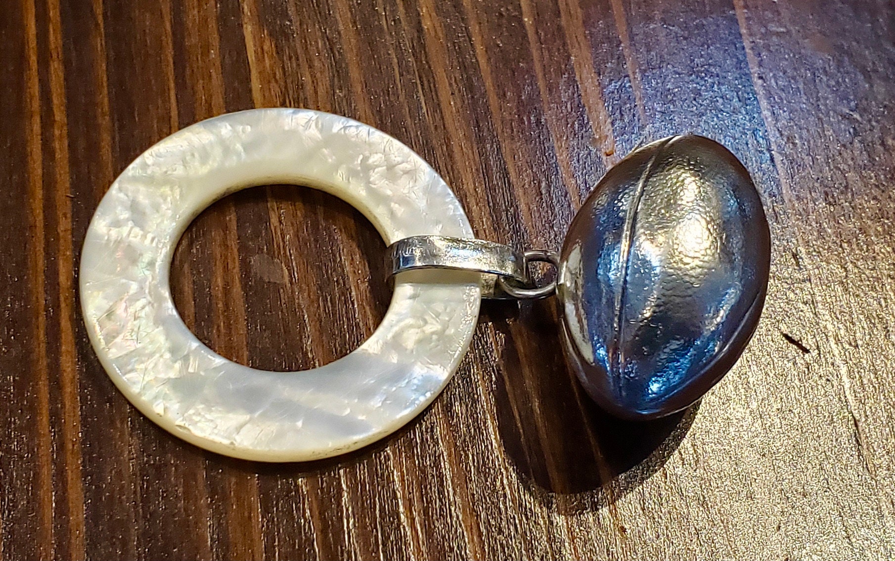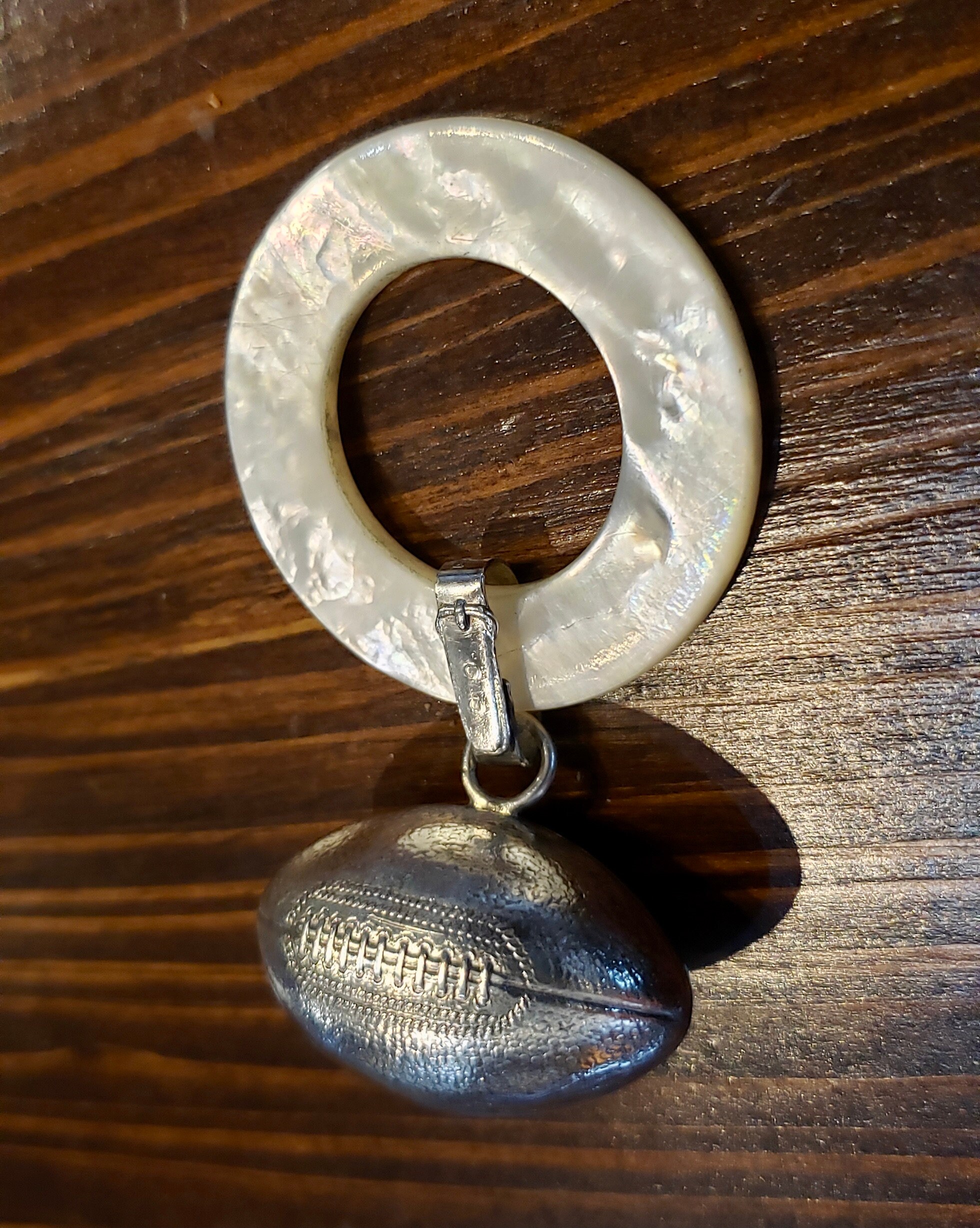 This adorable football sterling silver teething ring rattle is finely crafted for tiny hands and makes the perfect gift for any football fan. It is easy to hold and play with, and great for chewing when teething. This gift is a practical and creative way to welcome a new child into the world with a cherished keepsake for a lifetime. For easy tarnish preventative storage, add https://www.etsy.com/listing/779223480.
